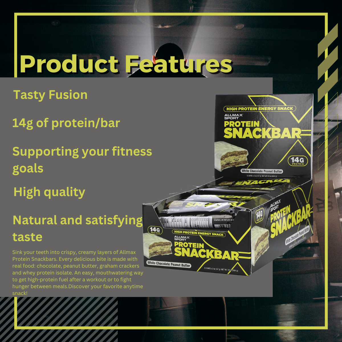 A: Sink your teeth into crispy, creamy layers of ALLMAX Protein Snackbars. Every delicious bite is made with real food: chocolate, peanut butter, graham crackers and whey protein isolate.ย