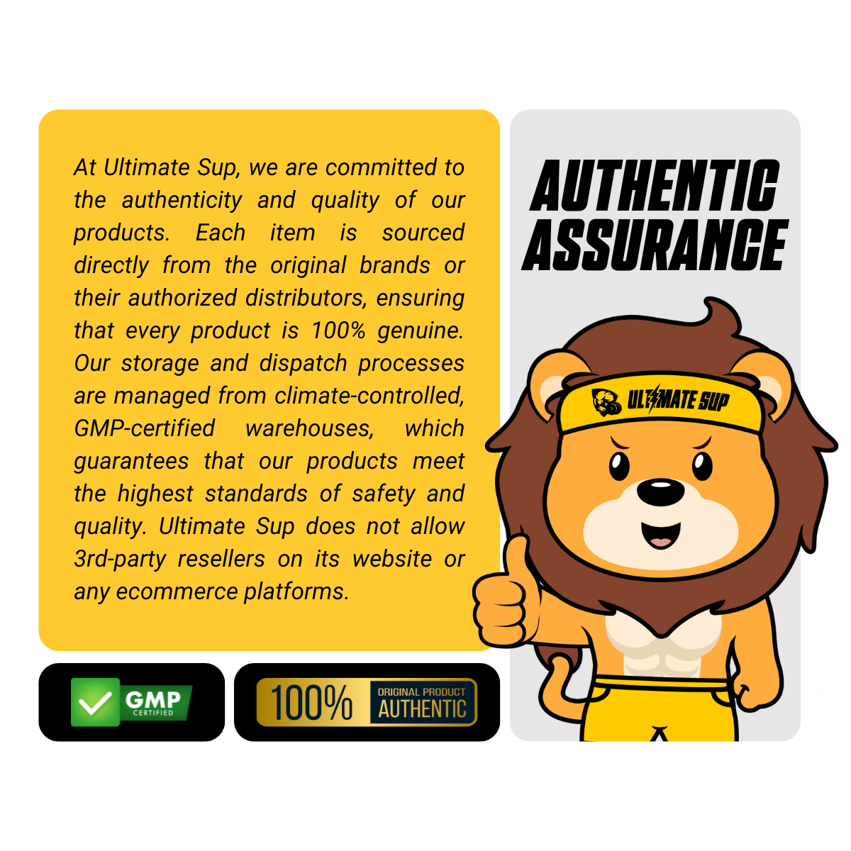 While Ultimate Sup strives to ensure the accuracy of its product images and information, some manufacturing changes to packaging and/or ingredients may be pending updates on our store. Although items may occasionally ship with alternate packaging, freshness is always guaranteed. We recommend that you read labels, warnings, and directions of all products before use and not rely solely on the information provided by Ultimate Sup.