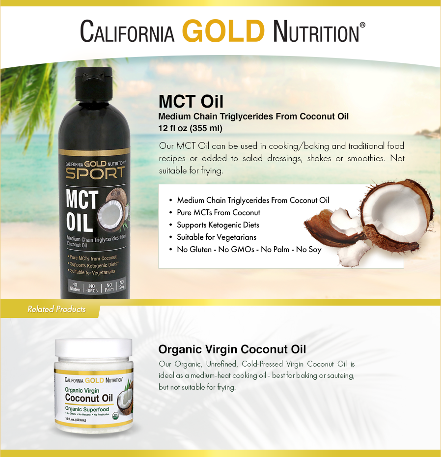 California Gold Nutrition | Organic MCT Oil | 12 - 32 fl oz (355 - 946 ml)