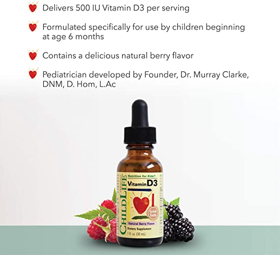 ChildLife Vitamin D3 is made especially for infants and children. Alcohol free, natural ingredients, optimum absorption and great tasting natural berry flavor.