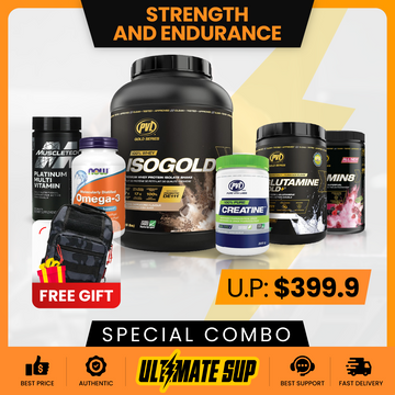 🔥 The Combo STRENGTH AND ENDURANCE is the ultimate solution for fitness enthusiasts looking to enhance their power and endurance. This pack includes PVL Iso Gold 5lb, PVL Creatine, Omega 3 200s, Domin8 Sport, PVL EAA+BCAA and MuscleTech Multi 90 Tablets to help you achieve your fitness goals.