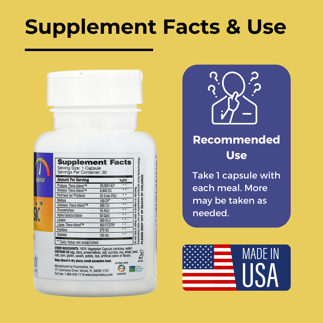 Enzymedica Digest Basic, Essential Enzyme Formula, Support Healthy Digestion 30-180 Counts
