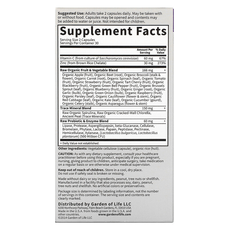 Garden of Life, Vitamin Code, RAW Zinc, 60 Vegan Capsules
