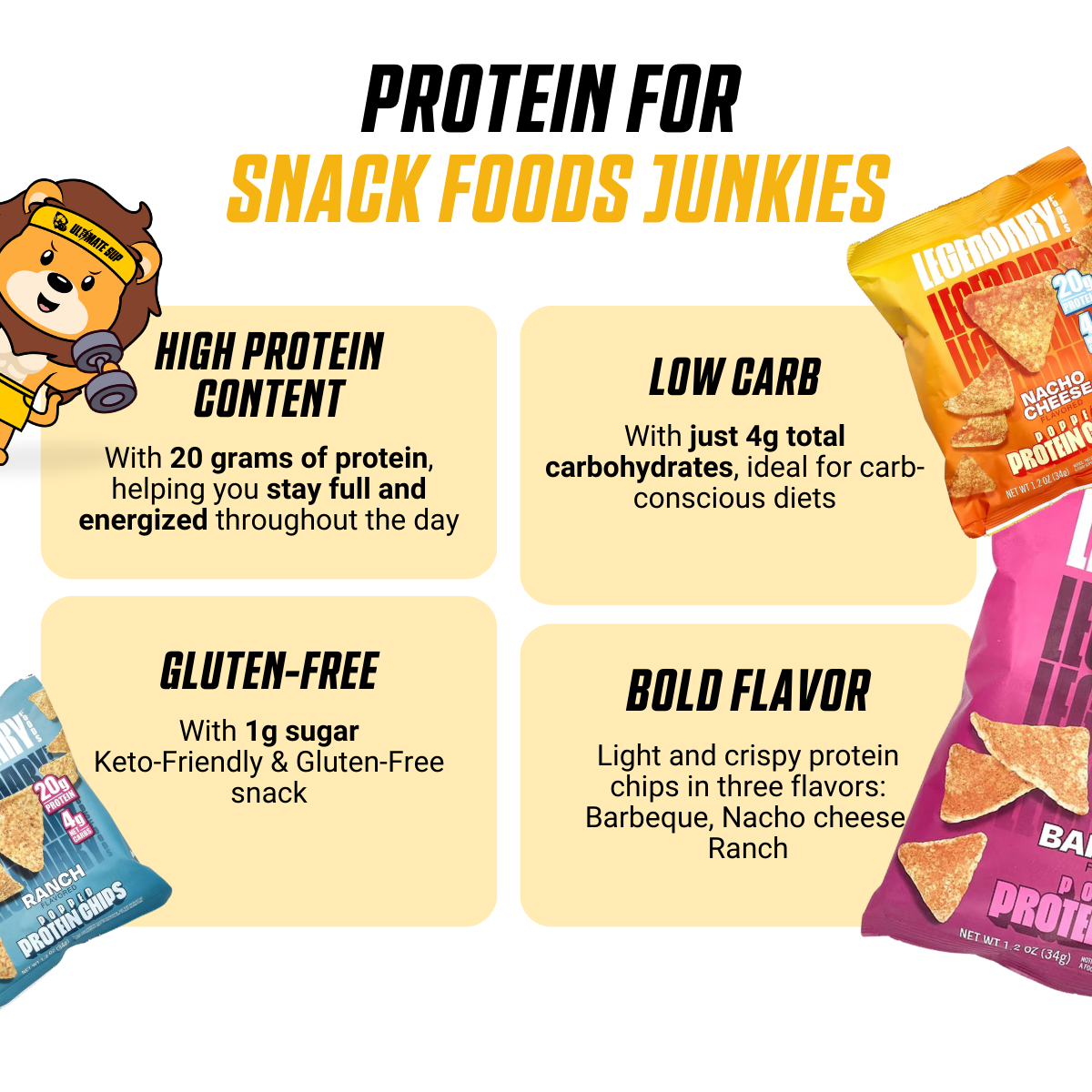 #UltimateSup #LegendaryFoods #ProteinChips #NachoCheese #HealthySnacks #KetoFriendly #GlutenFree #LowCarb #ProteinPacked #SnackTime