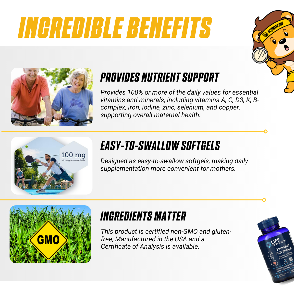 #UltimateSup #LifeExtension #PrenatalVitamins #PregnancyHealth #HealthyMom #BabyDevelopment #Vitamins #Nutrients #NonGMO #Omega3