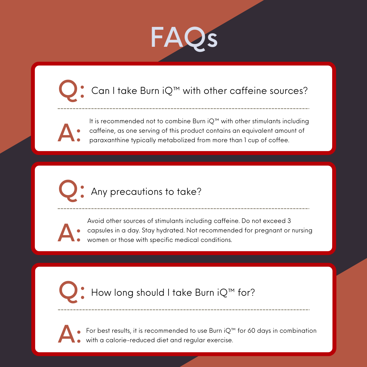 โจ To kick-start your Burn iQโข journey, first, assess your tolerance with 1 capsule along with 8 oz. of water.
