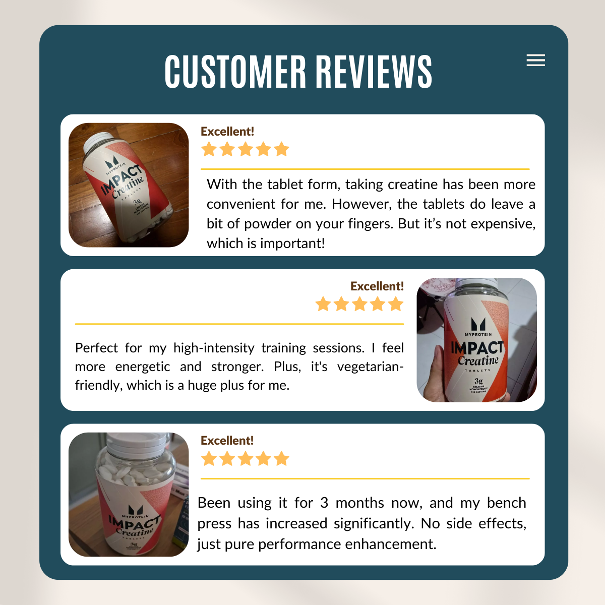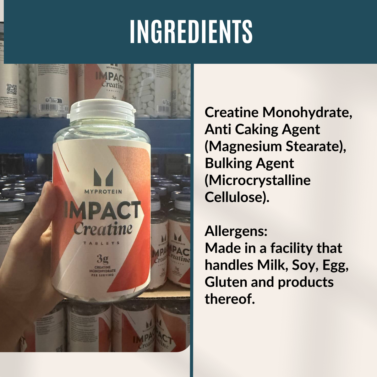 Myprotein Creatine Monohydrate stands out with its scientifically backed formula, ensuring potency and purity. It is manufactured in state-of-the-art facilities and is conveniently available in easy-to-swallow tablets that cater to athletes and daily fitness enthusiasts alike.Ingredients