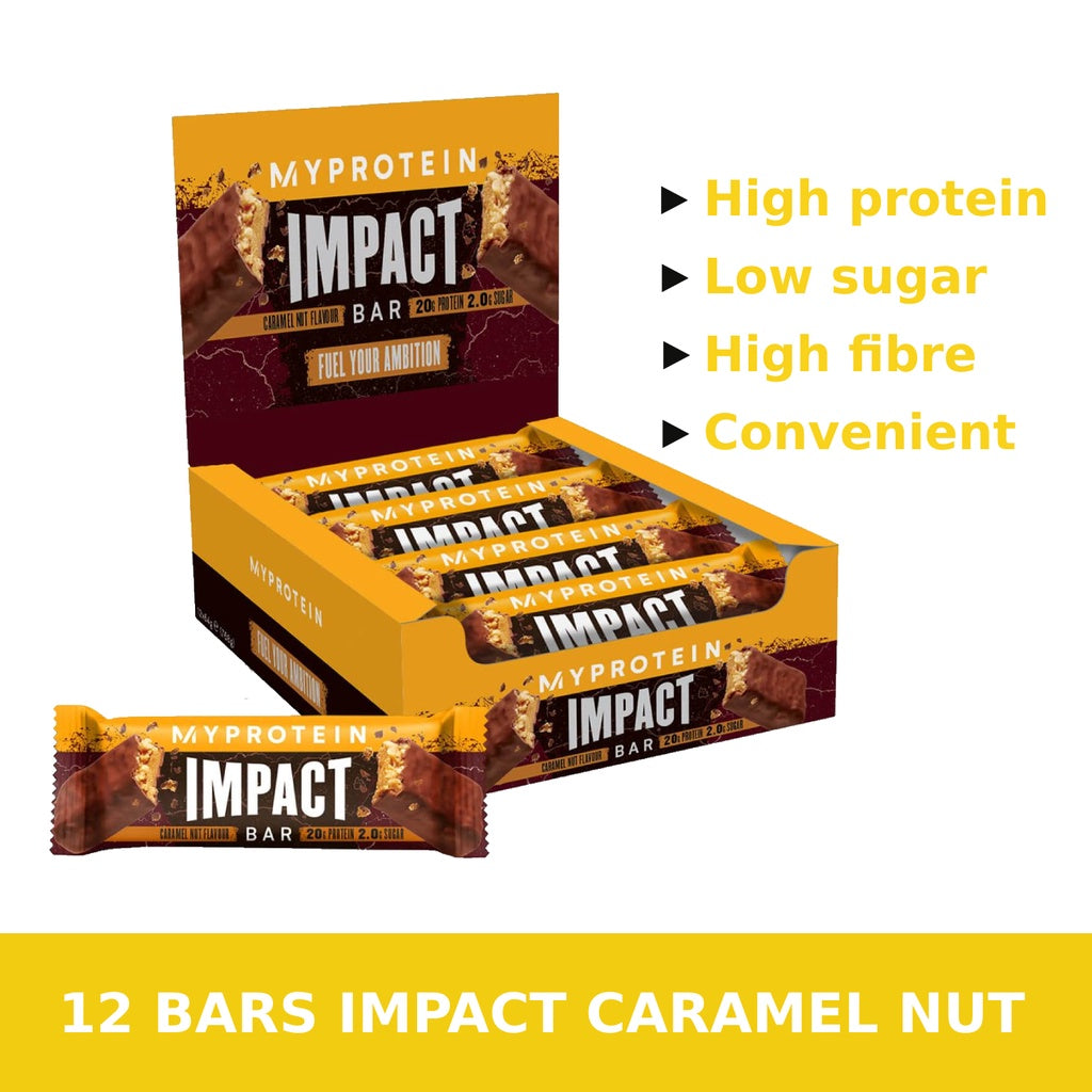 Our Impact Protein Bars are a triple-layered delight. With a soft and chewy low sugar caramel core. Packed with 20g of protein, we've got your nutritional's covered.