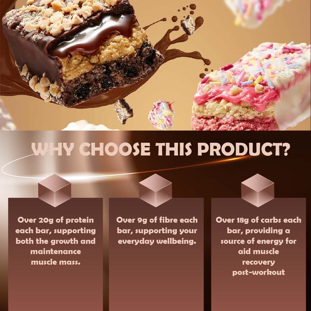 ⚡ What are the benefits of the Layered Protein Bar?Each Layered Protein Bar is loaded with over 20g of protein, helping you to hit your daily protein needs in a delicious way — supporting both the growth and maintenance of your muscle mass.1