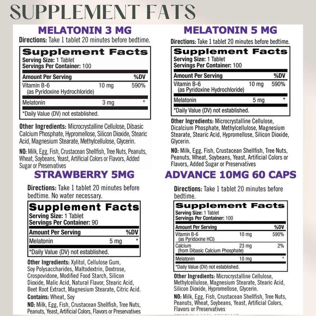 Apart from Melatonin, the supplement has 10mg of Vitamin B6 to support the melatonin's production.
