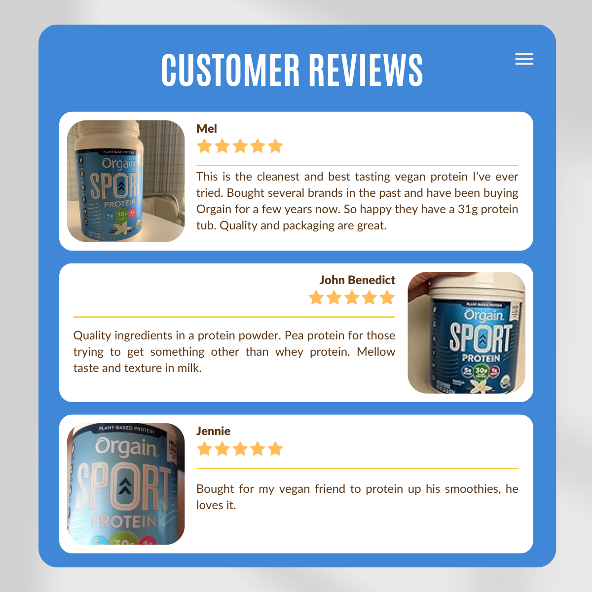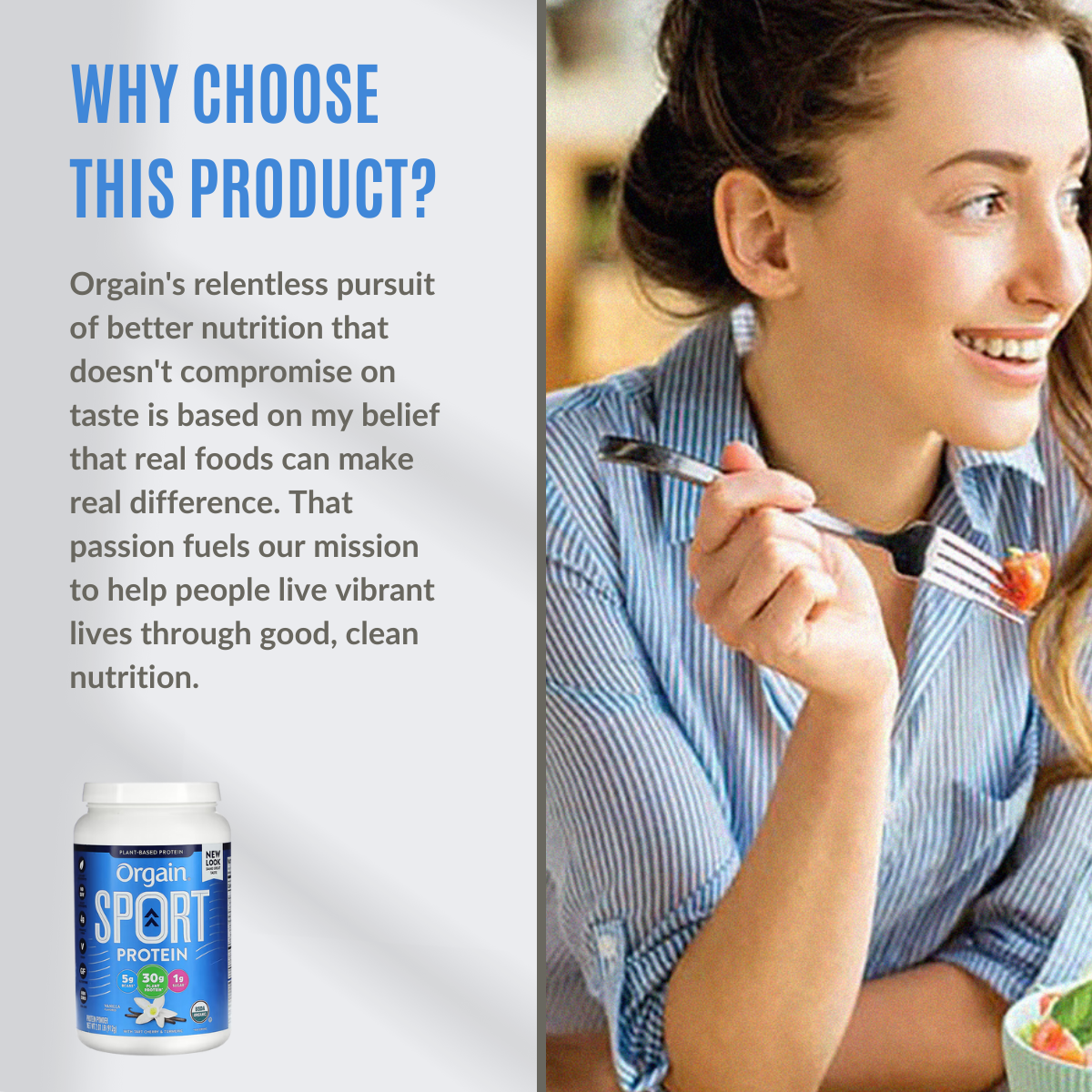 🌱 𝐖𝐡𝐲 𝐏𝐥𝐚𝐧𝐭 𝐏𝐫𝐨𝐭𝐞𝐢𝐧? 🌱: Sport Protein Powder is loaded with 30g of organic, plant-based protein plus 5g of BCAAs, which transcend your fitness boundaries with the innate power of plant protein that's wholesomely vegan and effortlessly digestible. Channel the clean, sustainable energy that allows you to align your fitness journey with ethical and healthful living. Orgain’s plant protein assimilates seamlessly into your system, offering a smoother, gut-friendly experience while nourishing your body with essential amino acids and potent antioxidants, becoming an immaculate ally in your fitness odyssey.