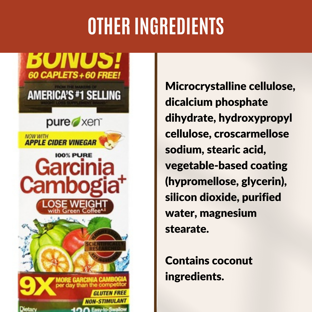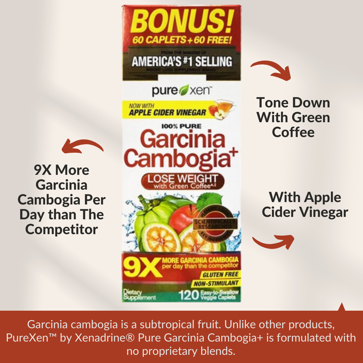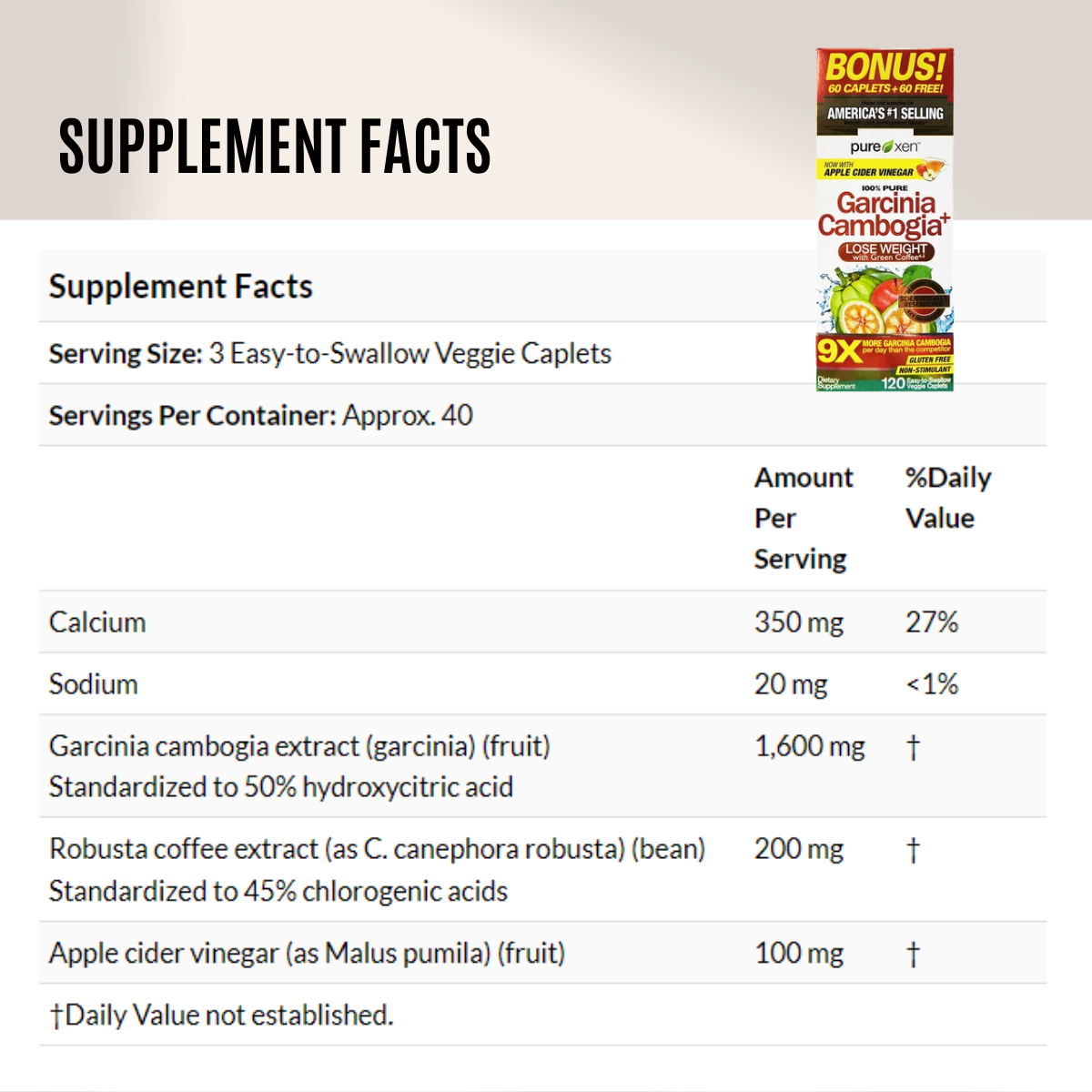 For weight reduction, Purely Inspired 100% Pure Garcinia Cambogia contains 200 mg of green coffee extract per serving and 1,600 mg of the common ingredient Garcinia cambogia.