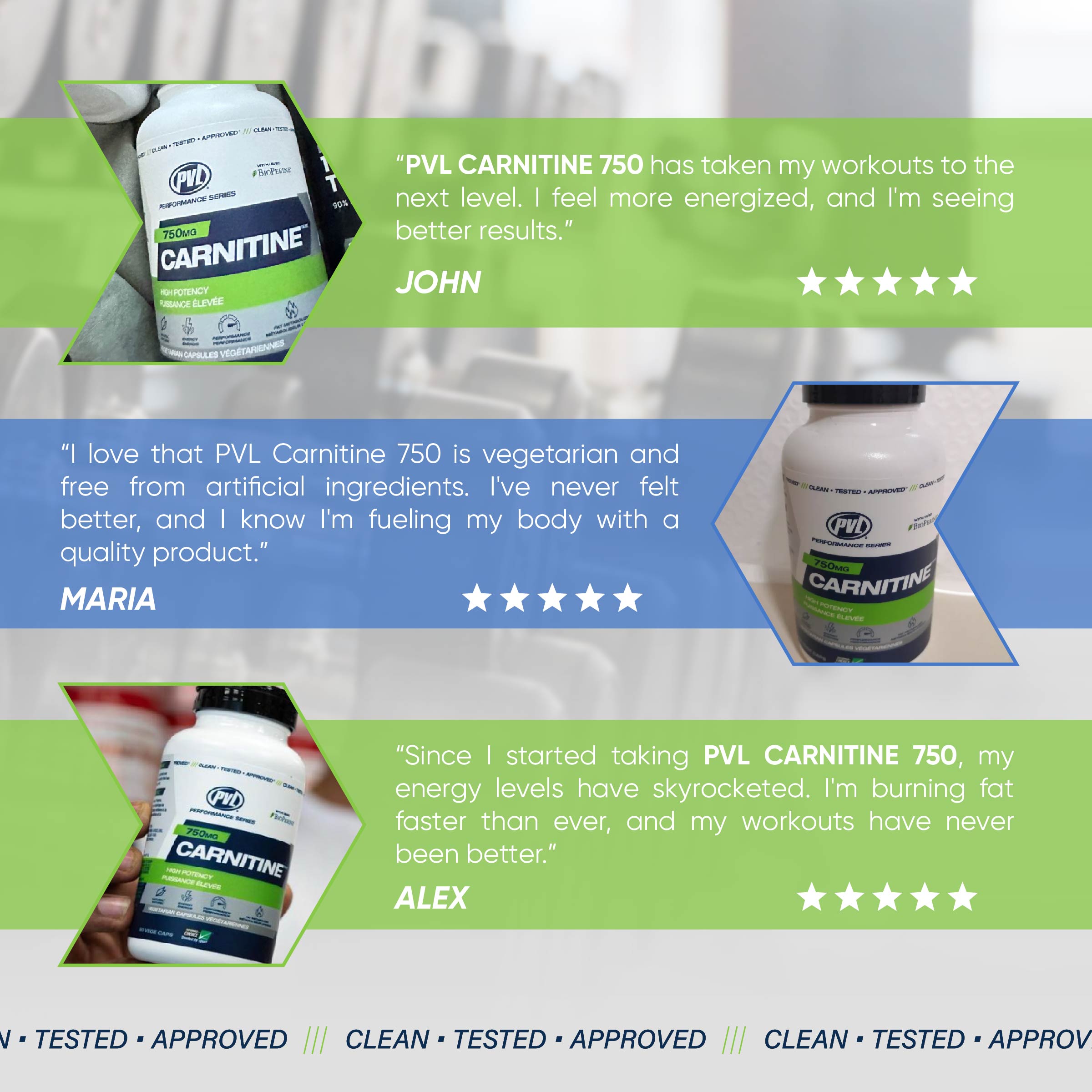 "PVL Carnitine 750 has taken my workouts to the next level. I feel more energized, and I'm seeing better results." - John
