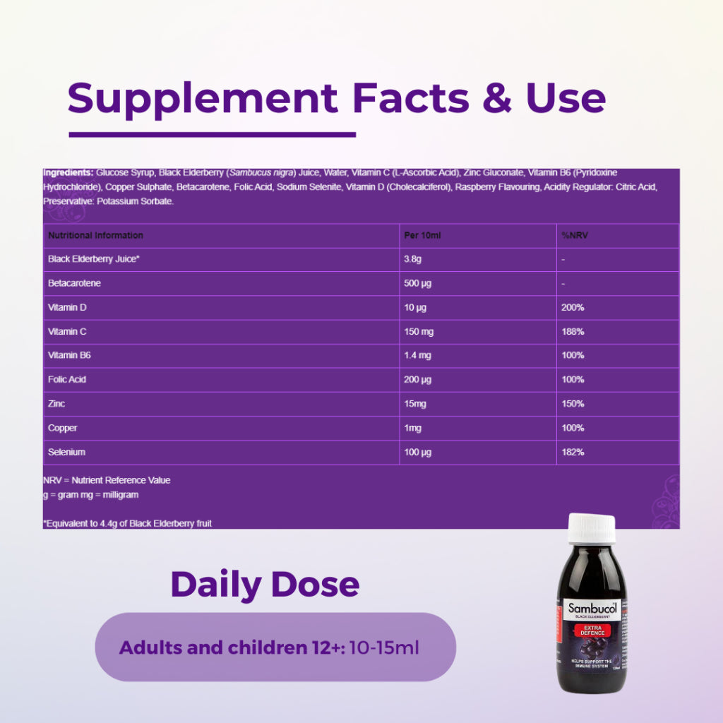𝑬𝒏𝒉𝒂𝒏𝒄𝒆𝒅 𝑰𝒎𝒎𝒖𝒏𝒊𝒕𝒚: Powered by Black Elderberry (Sambucus nigra), Vitamin C, Vitamin D, and Zinc to fortify your body's natural defenses.
