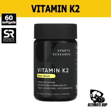 Sports Research Vitamin K2 featuring MenaQ7 is a non-GMO form of MK-7 derived from Chickpea. MK-7 has been proven to accumulate in the bloodstream longer than MK-4 and absorb faster than Vitamin K1. Optimal levels of Vitamin K are associated with improved bone circumference and reduction in arterial calcification.