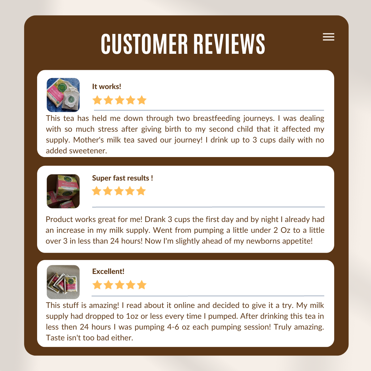 >"Within weeks of drinking this tea, I noticed a remarkable increase in my milk supply! The baby is happy, and so am I." - Jessica, a thrilled mother